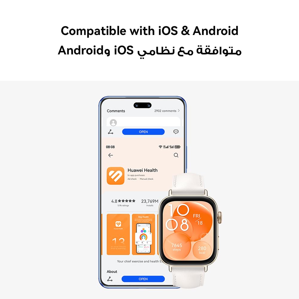 - 【Ultra-Slim Design】The new HUAWEI WATCH FIT 3 is a wafer-thin smart watch at just 9.9 mm and 26 g. The aluminium alloy body and smooth metal buckle are cool as can be, and a sight for sore eyes.